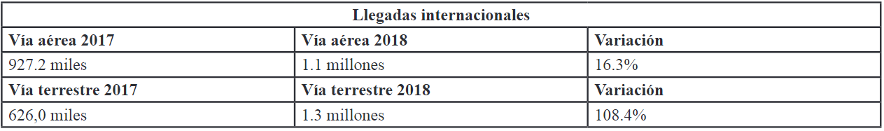 En Ecuador, 952.488 de turistas llegaron al país entre enero y mayo de 2018, lo que representa una variación del 57% en comparación del mismo periodo del 2017, que recibió 606.680 visitas, pero en total llegaron 1.553,2. En 2018 ingresaron al país 2,4 millones de personas. El mayor número de llegadas se registró por vía terrestre con 1,3 millones, seguido por vía aérea con 1.1 millones.
