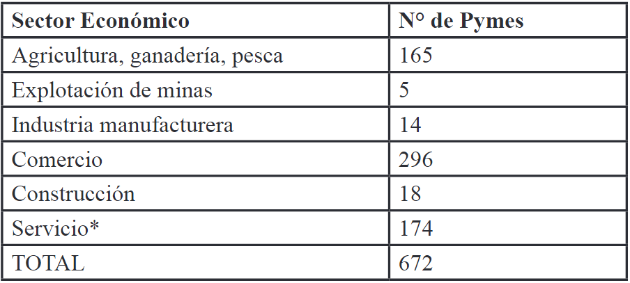 En conformidad a los registros del Plan de Desarrollo y Ordenamiento Territorial del Gobierno Autónomo Descentralizado de la Parroquia Crucita 2019-2023, se determinó el tamaño de la población, con relación al sector económico de servicio de infraestructura turística, registrados 65 PyMES formales del sector: Distracción, restaurantes y alojamiento