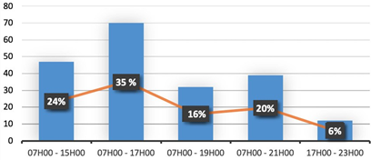 Una estrategia que se denota en el gráfico 3 es el horario de atención en los diferentes locales. Se evidenció que los restaurantes coinciden en la hora de apertura de su local dado que la mayoría abren a partir de las 07H00 am. Sin embargo, difieren en su hora de cierre. Existe por tanto prevalencia de los restaurantes que extienden su horario de atención hasta las 15H00 pm e incluso a las 7H00 pm, pero así mismo, hay restaurantes que extiende sus servicios a los turistas entre las 19H00 pm y 21H00 pm. Una minoría que corresponde al 6% abren a partir de las 17H00 pm y culminan su jornada de trabajo a las 23H00 pm.