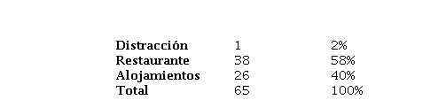 Para medir el desempeño estratégico de los restaurantes formales de la parroquia Crucita se propone la aplicación de la encuesta expresada bajo la representación gráfica en conjunto con el análisis cuantitativo. La muestra total de la investigación estuvo compuesta por 65 propietarios que se dedican a la actividad de restaurantes (38), servicio de alojamiento que incluye los hoteles y servicios de hospedaje (26) y distracción (1) que se encuentren debidamente formalizados de acuerdo con datos proporcionados por el GAD Parroquial de Crucita.