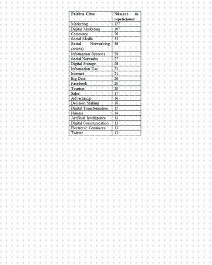 Tabla 2. Orden descendente en cuanto a número de repetición de palabras clave