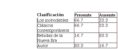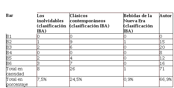 Por su parte, en la descripción del contenido de la Tabla 3 se presenta el análisis porcentual de la estructura de la oferta de bebidas (coctel) según la clasificación presentada por la Asociación Internacional de Bartenders.