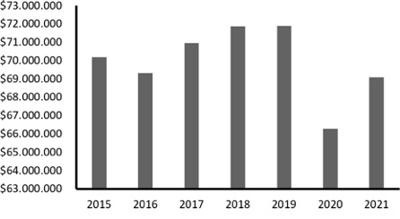 El valor de P-value es menor a 0,05, por lo cual, rechaza la hipótesis nula, y acepta la alterna, expresando que las varianzas no son iguales. Es decir, la media antes de la pandemia es de $19.614.715 y después fue $11.748.608,7, lo concluyente es que si hubo un impacto significativo en esta variable. Se evidencia que el impacto ocasionado por la pandemia fue significativo, que llevó a tomar medidas de despido de personal, cambiar la producción, como mascarillas o trajes, además, no recibieron apoyo del Gobierno, como incentivos tributarios especiales para empresas pymes, y así recuperarse del impacto económico, permitiendo la sostenibilidad del sector. Sin embargo, en postpandemia se observa una significativa y gradual recuperación en especial en exportaciones, que, si bien no fue de ropa liviana, como trata el estudio, se notó un aumento en exportación de: abacá; cuerdas; cordeles e hilos. (Ekos Negocios, 2022)