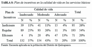 Tabla 8. Plan de incentivos en la calidad de vida en los servicios básicos