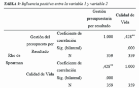 Tabla 9. Influencia positiva entre las variables 1 y 2