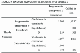 Tabla 10. Influencia positiva entre la dimensión 1 y la variable 2