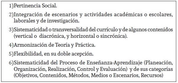 Para garantizar la formación de competencias de solución de problemas reales, el currículo debería tener no menos del 50% del fondo de tiempo total de dedicación del alumno a las actividades inherentes a los escenarios y actividades laborales o comunitarios, sumados entre sí, mientras que el otro tiempo se planifica para formas de enseñanza conceptuadas dentro del escenario académico o escolar. Incluso, como se verá más adelante, el estímulo a la participación del alumno en actividades extracurriculares extensionistas, como foros técnicos o científicos, intervenciones de ayuda a comunidades, etc., contribuyen a consolidar aún más la formación de un pensamiento teórico, investigativo, solucionador de problemas y comprometido socialmente.