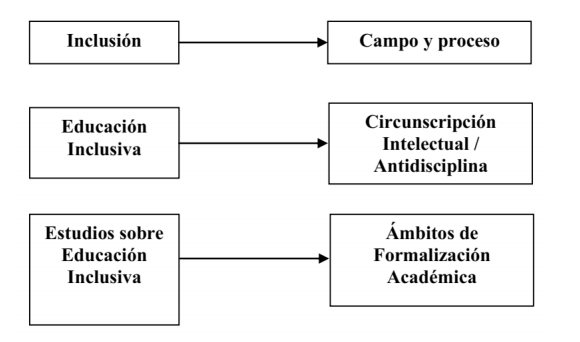 El campo epistemológico de la Educación Inclusiva se compone de complejas e intensas estrategias y mecanismos de importación y exportación; recursos epistemológicos de naturaleza heterogénea que son extraídos de otros campos, disciplinas, territorios epistemológicos. Sin duda, el proyecto epistemológico de la Educación Inclusiva recurre a tomar prestadas herramientas teóricas, instrumentos conceptuales, recursos metodológicos de otras disciplinas. No obstante, sus formas constructivas no se limitan y/o reducen a un sistema de préstamos, recurren a condiciones de traducción y rearticulación, dislocando sus fuerzas hacia otros rumbos. Si esto no se aplicase, corre el riesgo de quedar atrapada en marcos disciplinarios externos, forjando un objeto que actúa en tanto ficción regulativa de la realidad.