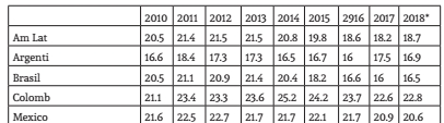 Con la reprimarización en un caso, los ingresos transferidos por los trabajadores inmigrantes a los Estados Unidos en otro y las entradas de capital netas de la repatriación de los dividendos e intereses pagados, las restricciones externas disminuyeron drásticamente en el decenio de 2000. La exportación de materias primas y las remesas -30.000 millones de dólares para México en 2019- aumentaron considerablemente la cantidad de divisas recibidas por esos países y, si bien han aflojado la restricción externa en la mayoría de los casos, también han fomentado el crecimiento del comportamiento rentista. La tasa de inversión resulta entonces insuficiente para permitir un crecimiento elevado y sostenible que pueda producir una mejora significativa y duradera de la cohesión social.