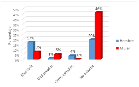 Por su parte, el Observatorio de Igualdad de Género de América Latina y el Caribe de la Comisión Económica para América Latina y el Caribe (CEPAL, 2019) ofrece datos que ilustran la situación: un 53% de tasa de participación laboral de la mujer, lo que indica que casi la mitad de las mujeres no trabaja; un 78% de mujeres laborando en sectores de baja productividad, y una mayor afectación femenina por el desempleo (8,6% de tasa de desempleo femenino frente a 6,6% de tasa de desempleo masculino). En este sentido, se afirma que aún hay esferas de la vida pública y privada donde las mujeres están en inferioridad de condiciones y señala la sobrecarga de trabajo no remunerado como principal barrera para la inserción femenina en el mercado laboral.
