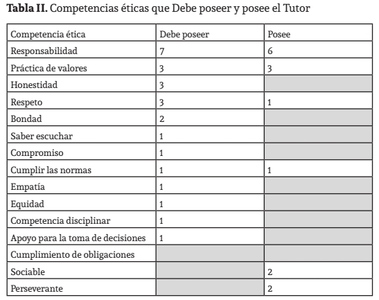 No obstante, aprecian altamente el papel que le corresponde a las competencias éticas dentro de la práctica de la tutoría, considerando la complejidad de esta labor, por la interacción que se establece entre tutor y tutorado, y el alto grado de responsabilidad que implica.