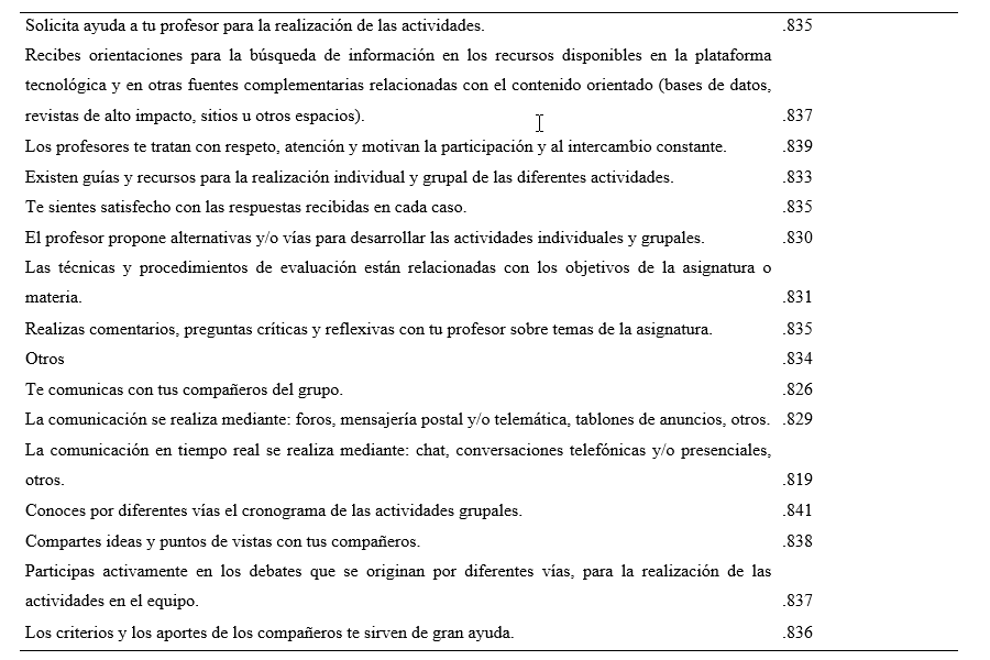 Finalmente es importante señalar que este instrumento se ha mostrado válido y fiable para diagnosticar la interactividad en la educación a distancia desde la percepción de los estudiantes.