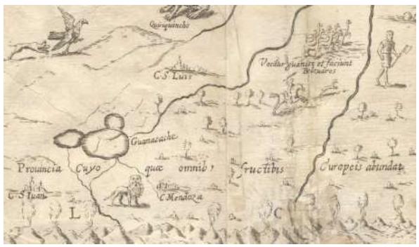 Volviendo a los primeros historiadores digamos que el jesuita chileno Alonso de Ovalle, profesor y luego rector del colegio de San Miguel de Santiago de Chile, publicó su obra en 1646 y donde, refiriéndose detalladamente a los indígenas de Cuyo escribe que, unos habitan en chozas y los de las lagunas en “socavones en la harena”, agregando que no tienen abundante comida y no se ejercitan en las armas como los de Chile, son buenos en la confección de cestería, pellones y plumajes. El sacerdote brinda características físicas y culturales de la etnia, mencionando que eran cazadores, recolectores y agricultores con instalaciones de redes hidráulicas, pero sobre todo y con respecto a aquellos “se differencian en la lengua que hablan, de manera que no se que tengan ni vna palabra que sea comun” (Ovalle, 1646, p. 101). Este fue un detallado texto del que se nutrieron todas las investigaciones posteriores hasta la actualidad.