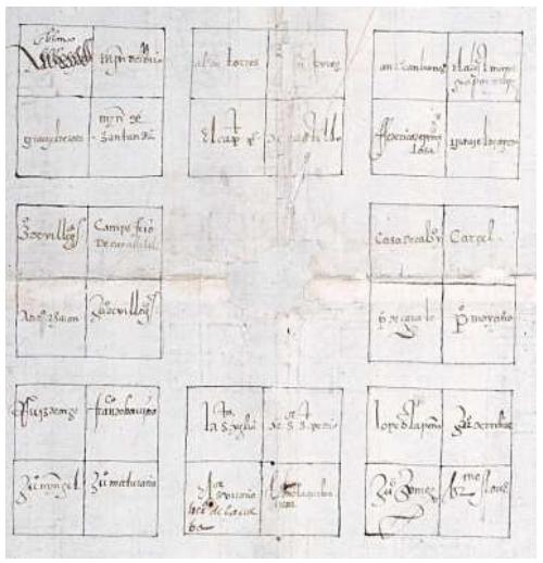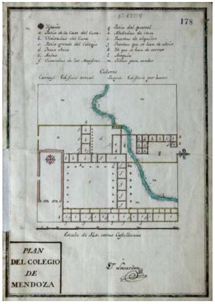 La deteriorada casa estaba ubicada en el solar de la manzana de la esquina sureste de la Plaza Mayor de Mendoza15, terreno que fue adjudicado al capitán José Lope de la Peña16, según figura en los planos correspondientes (Imagen 3). Seguramente nunca la ocupó o lo hizo circunstancialmente, lo cierto es que su esposa, Inés de León Carvajal compartía con el P. Torres la devoción por la Virgen de Loreto, por lo que no debe haberle costado mucho al provincial para que arreglara la donación durante su paso por Santiago, donde incluso los convenció de que liberaran a sus indios (Enrich, 1891). El matrimonio, vecinos de Santiago con encomiendas en Cuyo, no fueron declarados fundadores por los jesuitas, sino “bienhechores” (Enrich, 1891, p. 283). Él falleció en 1609 y ella profundizó su fervor por Nuestra Señora de Loreto, como lo era el P. Torres que difundió esta devoción al punto que ordenó que todas los colegios y reducciones llevaran una réplica de la Santa Casa (Page, 2015). Lozano agrega que el matrimonio se sensibilizó ante el predicamento en contra del servicio personal que hacía el P. Torres. Por eso fue que hicieron la donación a los jesuitas: “unas casas, que poseían en el mejor sitio de la Ciudad de Mendoza, y tierras de quarenta fanegas de trigo, y veinte arrobas de vino cada año, para sustento de los jesuitas que hubiesen de emplearse en predicar a los indios de Cuyo, y para descargar mejor sus conciencias”. (Lozano, 1754, II, p. 71). Más aún, agrega Lozano que, dieron amplio poder a los jesuitas para que repartieran el producido de sus haciendas a los indios.