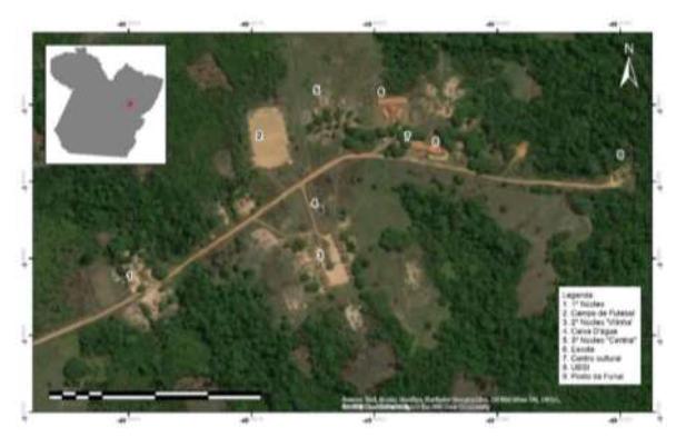 A aldeia sede está dividida em três núcleos familiares, como podemos observar na imagem 1, abaixo: