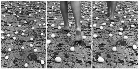 Observando contrastivamente “Onde estão os homens?” e “Entrevidas”, nota-se um diálogo entre as duas obras. É interessante destacar que a primeira é datada de 1966, e a segunda, de 1981, quase coincidindo com o início e o final da ditadura militar, respectivamente. Contudo, é consenso que o sentimento de perigo mantinha-se em virtude das forças de opressão que ainda se mecanizavam no país. O caminhar entre ovos, de pés descalços, ilustra, como abordado por Bergamaschi, a dificuldade do caminhar, do perigo que se passa, da situação delicada que se corre. O “pé, ao mesmo tempo que seria uma ameaça para a vida dos embriões dentro dos ovos, era ao mesmo tempo ameaçado por eles” (Bergamaschi, 2018, p. 232). As obras poética e visual dialogam uma com a outra em razão da comum sensação de perigo, da busca por novas representações que estão a desabrochar, mas que também podem ser pisoteadas pela repressão de Estado entre 1964 e 1985.