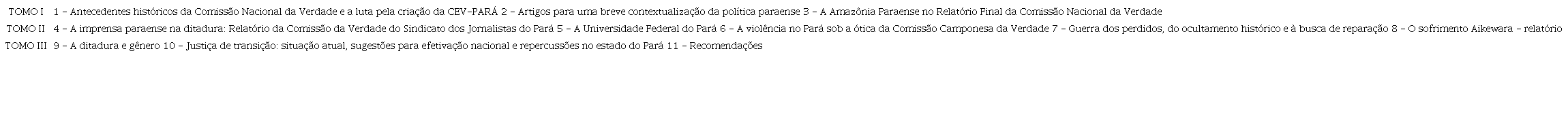 O relatório final, intitulado “Paulo Fontelles Filho”, possui 11 capítulos, divididos em três tomos, conforme o quadro 1: