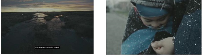 La naturaleza ha sido considerada por la cultura occidental como algo “exterior” a los seres humanos y a las sociedades, pero en algunas de estas películas lo que es fondo se vuelve figura: lo que llamamos “naturaleza” y los pueblos originarios. Tal como mencionamos anteriormente, hay una larga y problemática tradición estética de representar a la Patagonia como un territorio natural antes que cultural (Gattás Vargas, 2021), como un espacio vacío asociado a lo sublime y, posteriormente, como un espacio que sigue el canon de belleza europea. Consideramos que la aparición de estos audiovisuales acompaña un proceso político decolonial en el que “los mapuches han retomado las representaciones del paisaje que habían sido utilizadas para legitimar su exterminación y su despojo territorial, económico y político. Así, han erigido como símbolo de resistencia su relación privilegiada con la naturaleza” (Le Bonniec, 2014, p. 81).