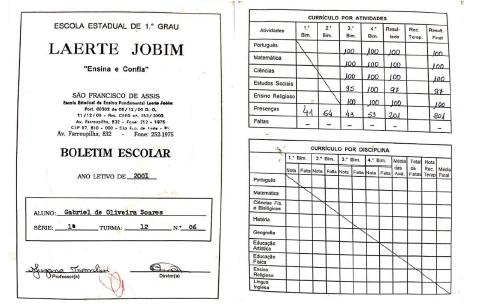 A entrada no Ensino Superior foi tranquila e segui com os meus instintos sobre a faculdade que gostaria de cursar. Fui um aluno com notas muito boas em Matemática durante toda a minha trajetória, fato que se comprova pela Imagem 1, com os resultados da primeira série. Mas foi somente no final do Ensino Médio que entendi que esse gosto por estudar Matemática era maior do que ser minha disciplina preferida. Eu sabia que havia algo ali que me chamava para esse mundo.
