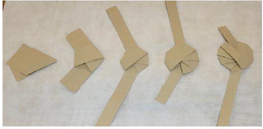 O percurso de construção dessas dobraduras está apresentado em Leivas, Lara e Soares (2017) e, com o tanto que aprendi nesse semestre, em uma outra intervenção com o GEPGEO, cheguei a produzir um vídeo (Soares, 2021) ensinando como fazer essa dobra, narrado por outro colega.