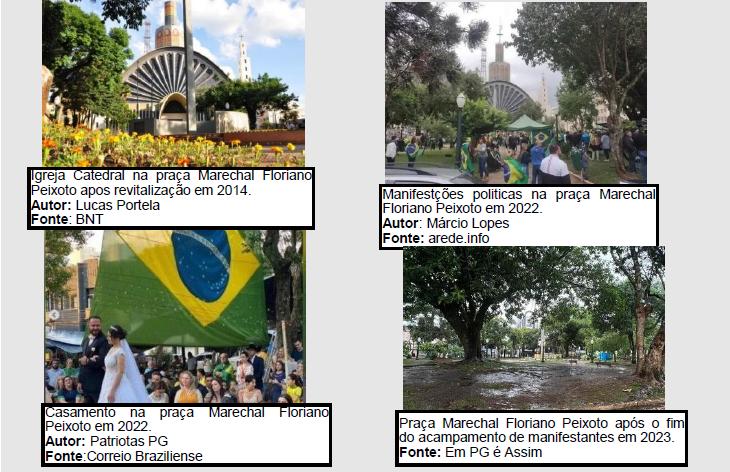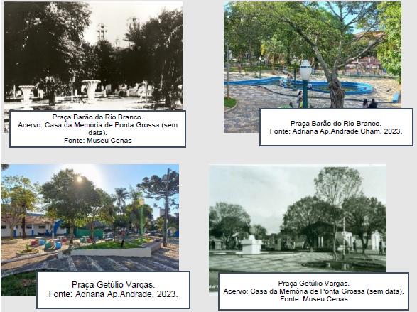 Esses locais (Imagem 9) fazem parte da memória individual e coletiva dos ponta-grossenses. Foram palco de eventos importantes como a comemoração do Centenário da Independência em 1922 (Praça Barão do Rio Branco); uma das praças foi ligada a um cemitério, como é o caso da praça Barão de Guaraúna; e atualmente, além da passagem de religiosos, é o local de encontro de passeatas e manifestações políticas. A praça Getúlio Vargas foi o local de abrigo de um zoológico onde existiam diversos animais selvagens, como leões e onças pintadas, fato que faz a praça ser conhecida até hoje como “Praça dos Bichos”.