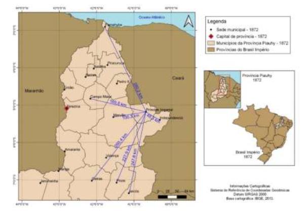 A partir do mapa 1 é possível perceber, então, o alcance que a doença teve no momento que grassou na província piauiense, bem como dois pontos de entrada da enfermidade a serem tratados no decorrer desta narrativa: as vilas limítrofes com o Ceará que terminaram sendo o principal ponto de entrada pelas vias terrestres e o receio da doença chegar pelo oceano Atlântico com o contato estabelecido no Norte por Parnaíba.