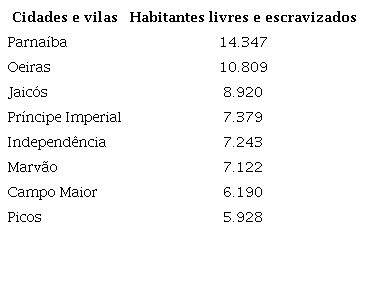 É preciso considerar, portanto, que a população piauiense, especificamente das cidades e vilas afetadas, tratava-se de um número reduzido ao compararmos, por exemplo, com a Bahia e sua capital, Salvador, respectivamente em números aproximados de 1 milhão e 56 mil pessoas em 1855 (David, 1993).