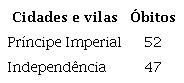 De 14 para 15 de Abril manifestou-se na Villa, e Termo do Principe Imperial o cholera-morbus, que foi considerado extincto á 31 de Maio; neste intervallo forão acommettidas 313 pessoas, das quaes 52 fallecerão.