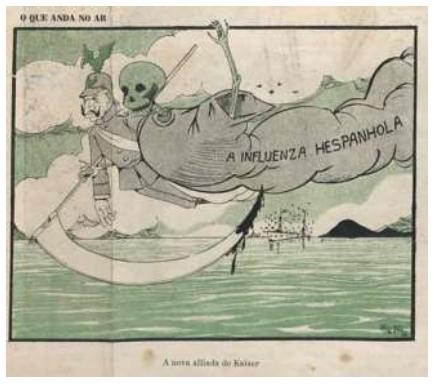 PERDIGÃO, Álvaro. O que anda no ar: a nova alliada do Kaiser. O Malho, n. 839, p. 25, 12 out. 1918.
