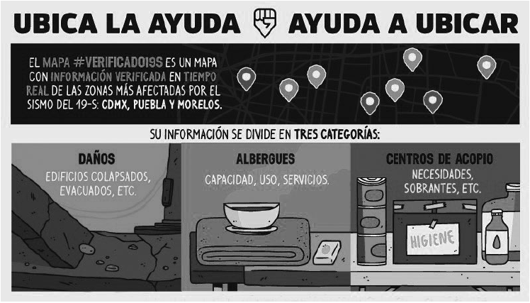 El proyecto estaba inspirado en Verificado19s, una iniciativa para verificar información nacida a partir del terremoto que tuvo lugar en México el 19 de septiembre de 2017 y que acabó con la vida de más de 350 personas (Ureste y Aroche, 2017). Se creó una base de datos y una plataforma donde recibían avisos en tiempo real de daños y derrumbes que geolocalizaban en un mapa.