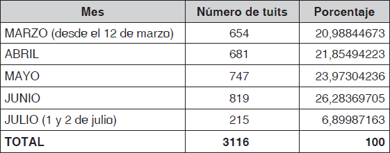 El análisis de los tuits publicados por la cuenta de VerificadoMx parte del principio metodológico y deontológico que defiende que son criterios periodísticos como la actualidad, la relevancia de las (des)informaciones y el alcance de las mismas los que determinan el ritmo de publicación de una información en su cuenta de Twitter. Esta afirmación se sustenta sobre la existencia de un equipo de trabajo profesional que estuvo dedicado a tiempo completo a esta tarea.