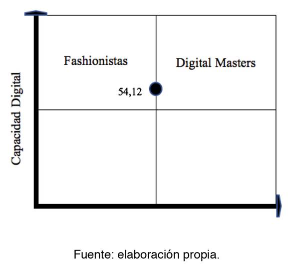 La capacidad digital de la empresa española se sitúa en la parte alta de la matriz entre los denomi nados fashionistas y los digital masters, tal como aparece representado en la Figura 3.