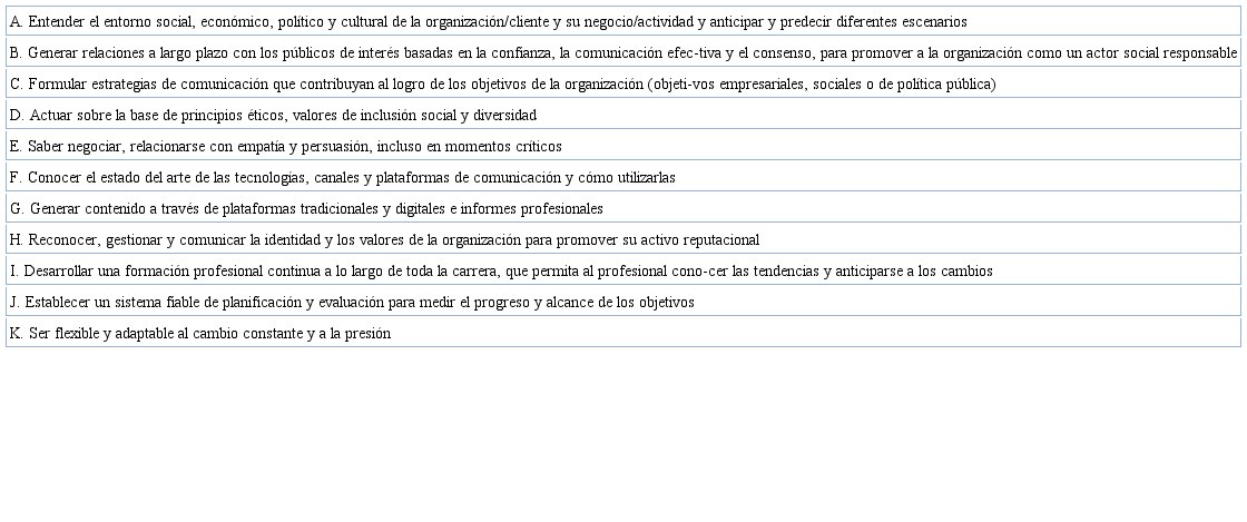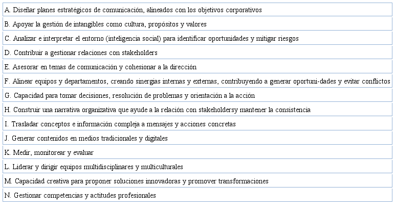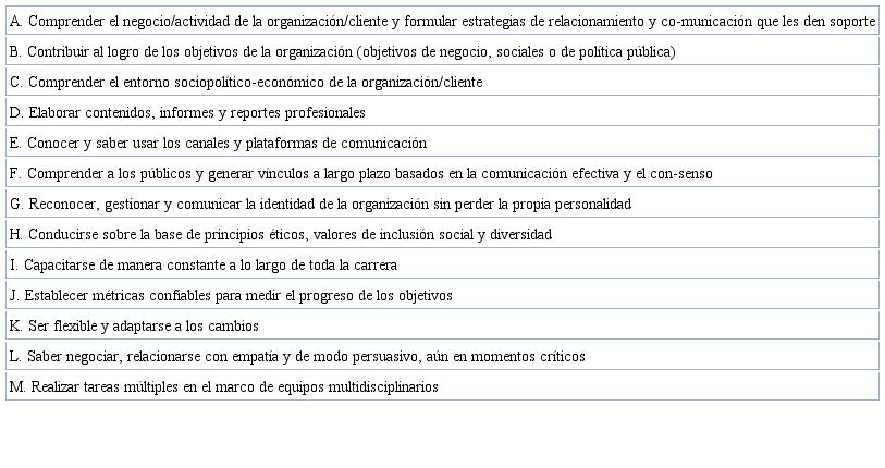 Keywords: professional capabilities, public relations, strategic communication, competencies, Argen tina, Spain.