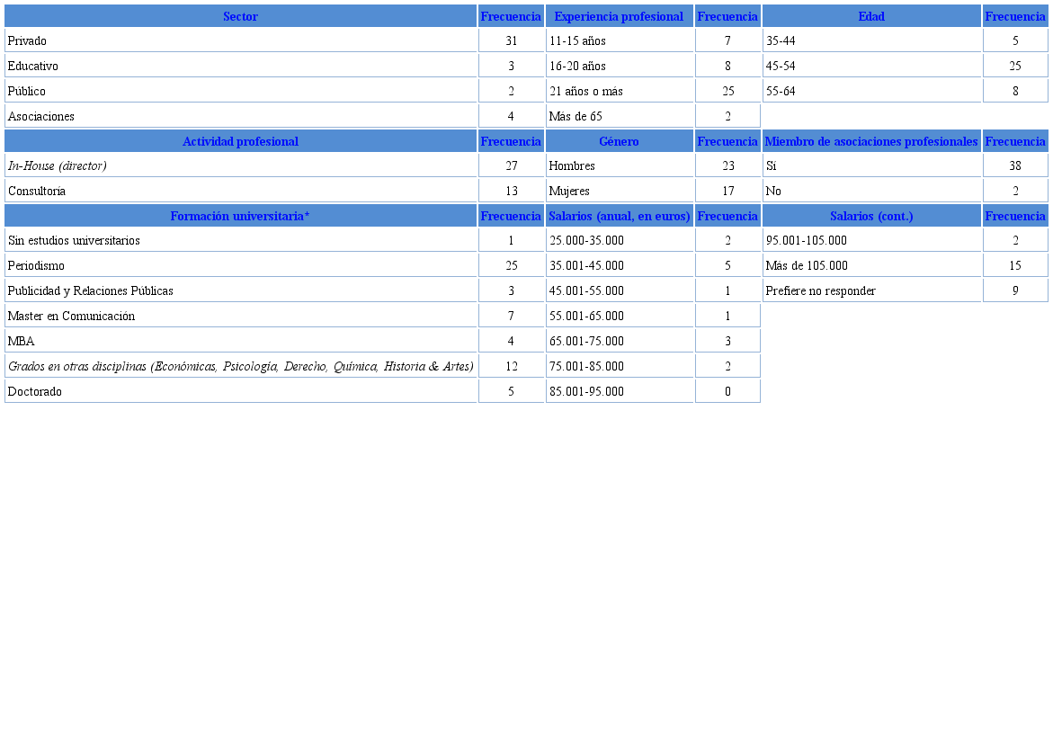 Tench, R., Zerfaß, A., Verhoeven, P., Verčič, D., Moreno, Á. y Okay, A. (2013). Competencies and role requirements of communication professionals in Europe. Insights from quantitative and qualitative studies. ECOPSI research report. Leeds.