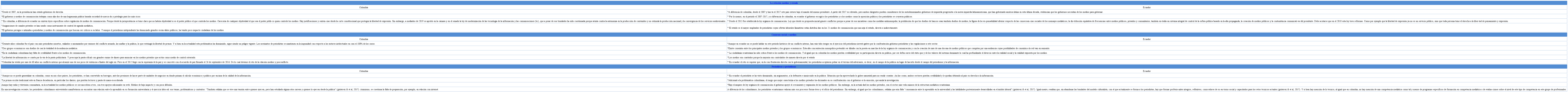 A todo los anterior se suma un ejercicio profesional en ambos países, Colombia y Ecuador, que suma crisis a las crisis generales que ya se han planteado. La siguiente tabla comparativa realiza una síntesis de las principales circunstancias que han determinado las prácticas profesionales en ambos territorios en el período 2007 a 2019.