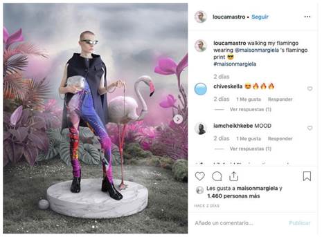 Como muestran los porcentajes de resultados (Tabla 3), los posts publicados se concentran en la promoción de la marca y del producto por delante del influencer. Destacan los mensajes dirigidos a reforzar la imagen de marca en Gucci (58.8%) y en Loewe (56,3%), mientras que en Margiela es el producto, el ítem, que concentra la máxima atención del post (80%). (Véase Imagen 1, 2 y 3)