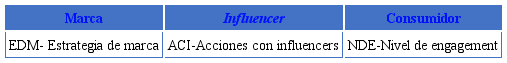 En esta clasificación se descarta la participación de influencers, dado que no forman parte del códi go “panel de expertos” y, además, constituyen uno de los objetos de estudio de investigación desde un enfoque centrado en las propias marcas y los prosumidores e instagramers.