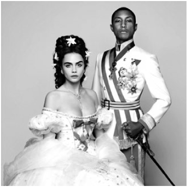 Los personajes de emperador y emperatriz de Austria denotan elegancia y clase al bailar, pero además lo hacen al ritmo de una canción cuya letra habla del abrir los ojos y ver el mundo. “Beauty is not hard to define, it is there inside when your open your eyes; hey! Don’t be blind, be open to see the world” explica la canción. Esta letra puede tener una similitud con la época en la que Coco Chanel vivía en 1954 en la que la belleza era muy ostentosa y del mismo modo lo era la ropa femenina, con siluetas rígidas y exuberantes, que les impedían a las mujeres moverse con comodidad. La chaqueta Chanel reinventa la belleza y la moda porque les permite a las mujeres moverse con libertad y no deja de ser una prenda bonita y femenina; es una prenda totalmente diferente a lo que se usaba en ese entonces, Chanel descubre algo nuevo en Austria, y lo trae a su marca.