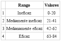 Después de sumar, se obtienen los resultados para cada una de las categorías especificas o principales. La suma general de todas las dimensiones determina un indicador general de la eficacia del sitio web y de sus diferentes elementos. Al término del análisis anteriormente expuesto, se restablece una codificación que determina el nivel de eficacia de los sitios webs de los Diputados chilenos como herramienta comunicacional (Tabla 1).