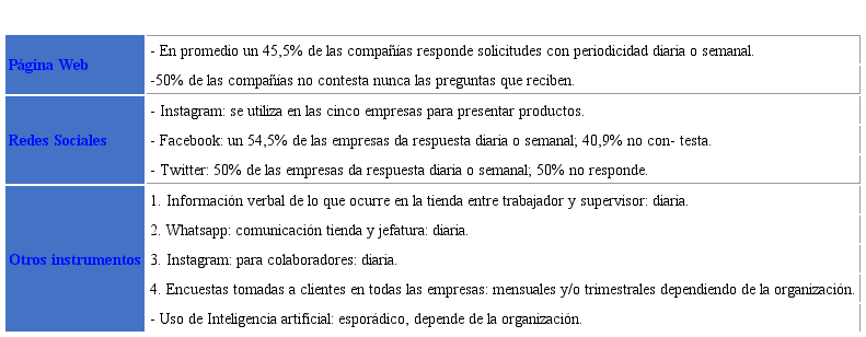 En este sentido es posible visualizar que es importante para estas compañías tener respuestas dinámicas con los clientes :