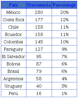 Con respecto a los formatos, al desagregar los registros por país se encuentran diferencias que permiten evidenciar diferentes estrategias de gestión de la información (Tabla 4).