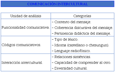 1. Funcionalidad comunicativa: Determina si el mensaje de las producciones radiofónicas cumple los objetivos de ser pertinentemente adecuados desde una perspectiva intercultural. Se valoran elementos como el contexto, la otredad, valores, tradiciones e incluso su adecuado uso desde aspectos educativos y pedagógicos.