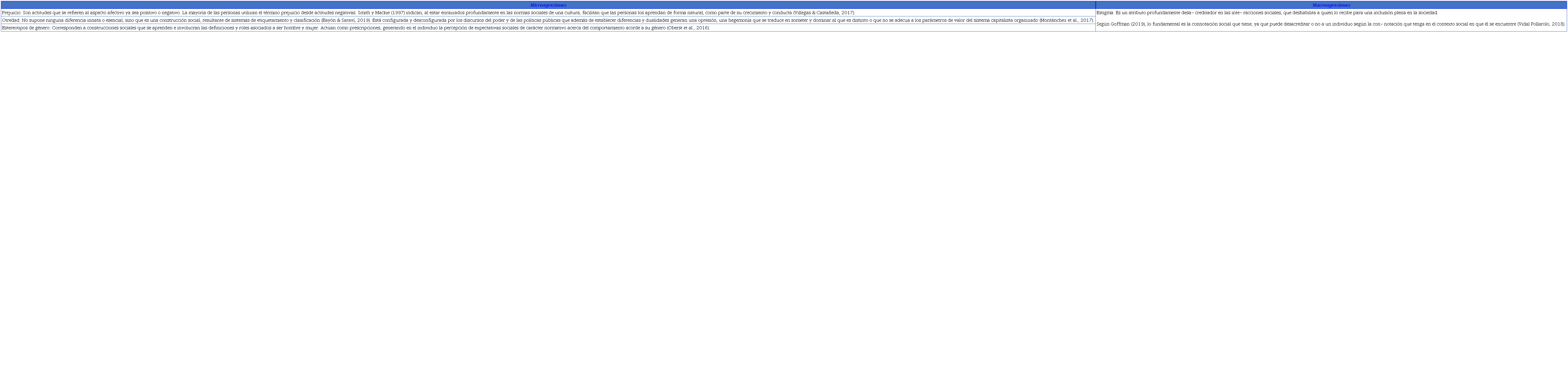 Estas descalificaciones se presentan de diversas formas, pudiendo ser de manera evidente e intencionada o de forma solapada pero recurrente o incluso cotidiana. El ejercicio del poder de un grupo social sobre otro, puede estar cimentado en modelos que aborden las bases teóricas del prejuicio, pues, como indica el fundamento de la Teoría de la Dominancia Social (Pratto et al., 1994), todas las sociedades suscitan el conflicto entre grupos, lo que las lleva a crear mitos de legitimación que sostienen la desigualdad, resaltando la propia superioridad, como es el caso del prejuicio étnico, del nacionalismo, del sexismo, de la meritocracia y del conservadurismo económico-político (Kattari, 2017). Según Goffman (2019), esto se sostiene desde la categorización social, que define y naturaliza estos grupos y los atributos que se relacionan con cada uno de ellos. Así, el extraño que no cumpla con estas características es signado como defectuoso.