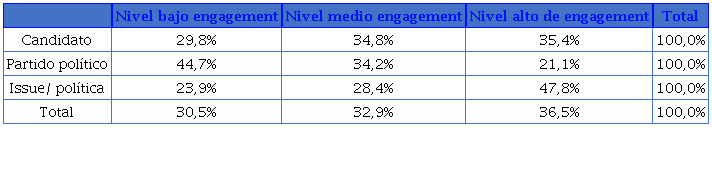 Asimismo, los datos revelaron diferencias significativas en función del tema en cuestión. Cuando estamos ante temas vinculados con cuestiones sociales (soft issues) como desigualdad social o inmigración, el nivel de engagement fue mucho mayor en comparación con cuando se trataba de temas más duros (hard issues) relativos a los políticos o la clase política.