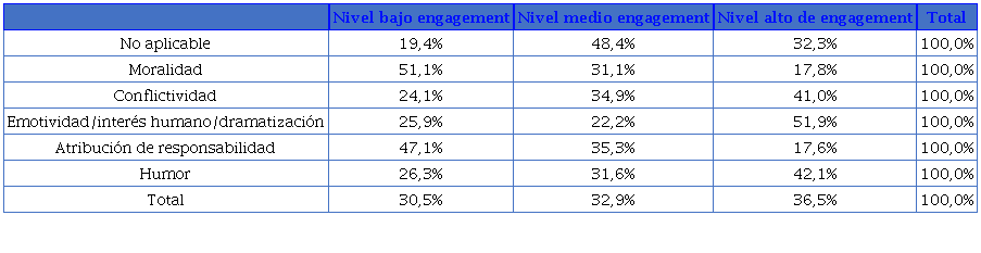 Finalmente, esta investigación ofrece resultados relevantes en la relación entre encuadres y nivel de engagement: los tuits que utilizaron mayoritariamente como marcos interpretativos el encuadre de la emotividad, así como el recurso del conflicto y del humor, lograron despertar mayor implicación del público.