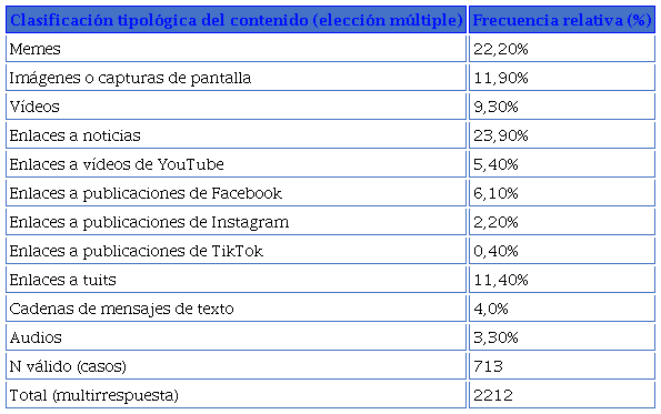 OE3. Analizar la naturaleza del contenido más compartido en WhatsApp y el origen de ese tipo de contenido.