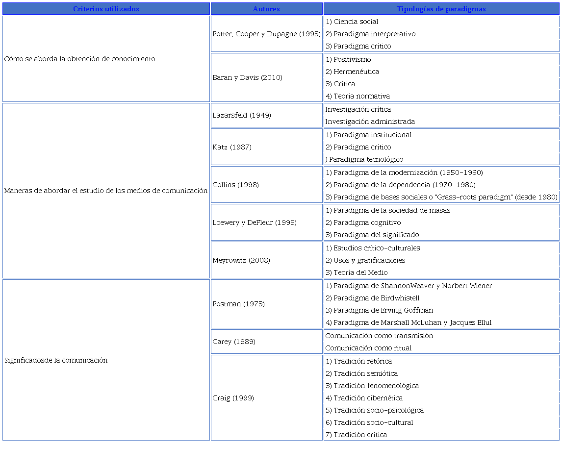 Tipologías de paradigmas en la investigación en comunicación. Una propuesta de clasificación