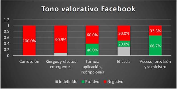 En cambio, el tono valorativo positivo disminuyó al 20,5% respecto del 24% que había acaparado en la cobertura mediática general. El dato llamativo en este punto es la disminución del tono indefinido al 10,3%, dato que permite confirmar la hipótesis que sostiene que las noticias que mayor nivel de involucramiento obtienen en redes contienen elementos afectivos explícitos, ya sea negativos o positivos.