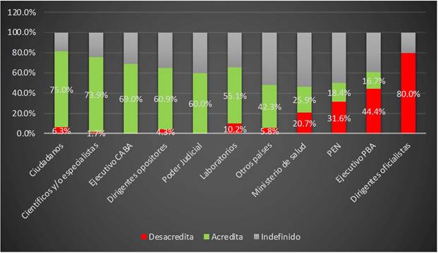 Si se pone el foco sobre el crédito diferencial que obtuvieron las fuentes políticas nacionales nuevamente se evidencia una fuerte polarización afectiva que es concordante con el tono general de la cobertura. Mientras que las visiones de los funcionarios del Ejecutivo de la CABA, conducida por la principal alianza opositora, no fueron puestas en duda, del mismo modo que generalmente tampoco lo fueron las versiones de los principales dirigentes opositores; los principales funcionarios del PEN, del Ejecutivo de la Provincia de Buenos Aires, y de los dirigentes políticos oficialistas fueron mayormente desacreditados.