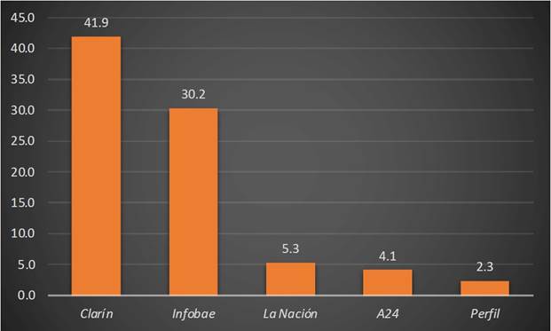 La creciente penetración de las redes sociales, que alcanza el 64% en América Latina (Mitchelstein et al., 2020), se condice con un aumento en la cantidad de personas que se informan por internet, que en la Argentina llega al 86%, con amplio dominio de un puñado de portales que incluye a las versiones digitales de los principales diarios en la web y nativos digitales con amplio poder de penetración.